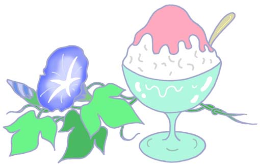本日のテーマ 「季節もの(夏・朝顔、カキ氷) - ハガキ(暑中見舞い)・チラシ・ポスター用 」のイラスト<大・小サイズ>