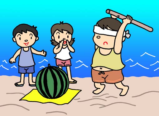 本日のテーマ 「季節もの(夏・海、西瓜割り) - ハガキ(暑中見舞い)・チラシ・ポスター用 」のイラスト<大・小サイズ>